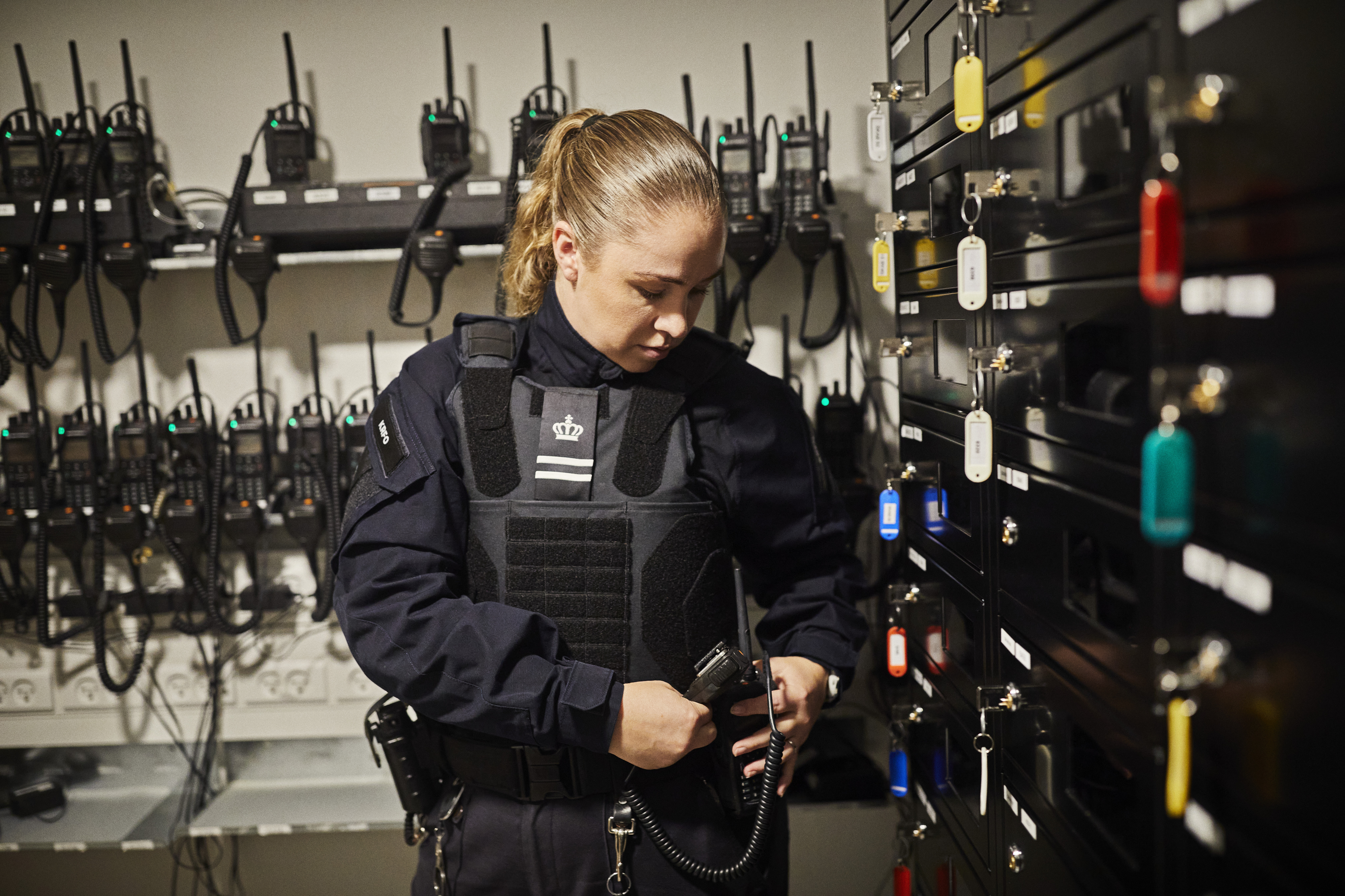 ”Vi er altid mindst to betjente på en opgave, og vi bruger ofte tiden i bilen hjem til at vende dagen. Ved pressede situationer, fx hvis en indsat har været udadreagerende, bliver der taget hånd om os fra ledelsen med bl.a. debriefing. Det har jeg nu ikke selv oplevet i mine snart tre år i uniformen. Men det er selvfølgelig et følelsesmæssigt krævende fag, fordi vi arbejder med udsatte mennesker. Derfor er det vigtigt for mig at koble af i min fritid. Det gør jeg bl.a. gennem sport. Jeg har altid redet og været meget aktiv. Og for et halvt år siden startede jeg på et serie 2-fodboldhold, hvor jeg også er anfører. Den rolle trives jeg, nok ikke så overraskende, virkelig godt i.”